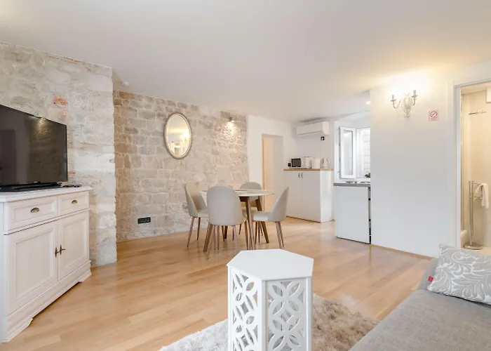 Wenn Sie im Stadtteil Altstadt Split von Split wohnen möchten, ist das Aurum Templi Suites Split eine gute Wahl. Die Unterkunft liegt in ca. 5 Gehminuten Entfernung vom Stadtmuseum von Split. Dieses Apartment liegt nur 300 Meter vom Diokletianpalast entfernt und verfügt über praktische Reinigungseinrichtungen wie Trockner.